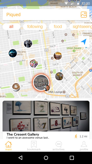 We made the mini description views as informational as possible while leveraging the maximum amount of space so that the user could still browse through out the map and find additional pins. We styled our experienced based on card design and the image would pull from the bottom up.